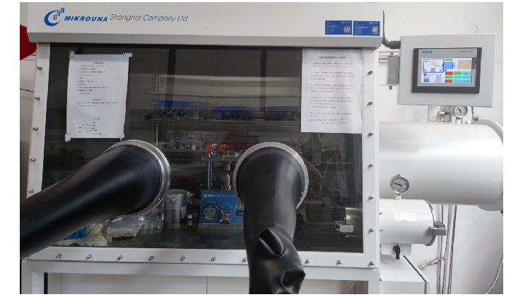 手套箱内的惰性气体经循环风机和净化器密闭循环,不断地除水除氧。除水除氧材料可以自动控制再生,再生过程由程序控制。手套箱内的气氛置换通过自动控制的清洗阀门完成。手套箱内压力通过PLC自动控制,工作压力+/-10mbar内可以自由设定,超出+/-12mbar系统自动保护。真空泵在系统需要时自动开启。